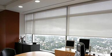 Motorized shade control provides an elegant and efficient solution to capturing and curating the natural light in your work space.
